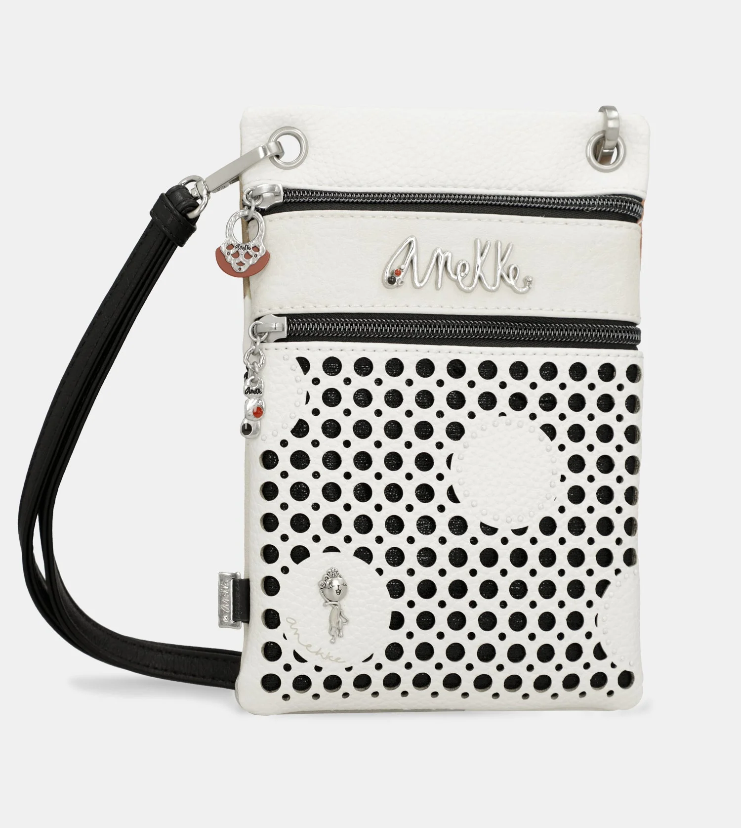 Dieses Produkt gehört zur Linie Lunares. Diese originellen Kreise sind eines der traditionellen Muster der spanischen Kultur und werden hier in Form eines handwerklichen Geflechts aus Weidenruten neu interpretiert, das mit größeren geometrischen Punkten überlagert ist. In dieser Linie finden Sie sehr schicke Designs mit einer neu erfundenen traditionellen Note, durch die vielen Details an Nieten, Ausschnitten und Pins. Diese kleine Umhängetasche verfügt über zwei Fächer im vorderen Teil, beide mit Reißverschluss, und über ein weiteres Fach im hinteren Teil. Das Innere ist gefüttert. Der Schulterriemen ist längenverstellbar und hat eine Schlaufe auf der Rückseite, damit sie auch als Gürteltasche um die Taille getragen werden kann. Und obwohl man sagt, dass die Seele etwas ist, das man weder sehen noch berühren kann, bedeutet etwas „mit Seele“ zu tun, es mit Liebe, Begeisterung und der besten Version von sich selbst zu tun. Also mach dich bereit, mit der Seele und Anekke zu tanzen, und wähle jetzt deinen neuen Favoriten!